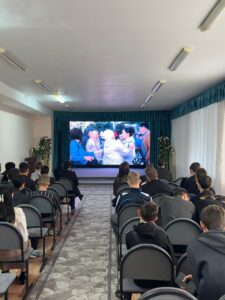 Студенттер үлкен қызығушылықпен фильмді тамашалап, туған қаланың рухын сезініп, Отанға деген сүйіспеншілік пен мәдени құндылықтардың маңыздылығын талқылады.