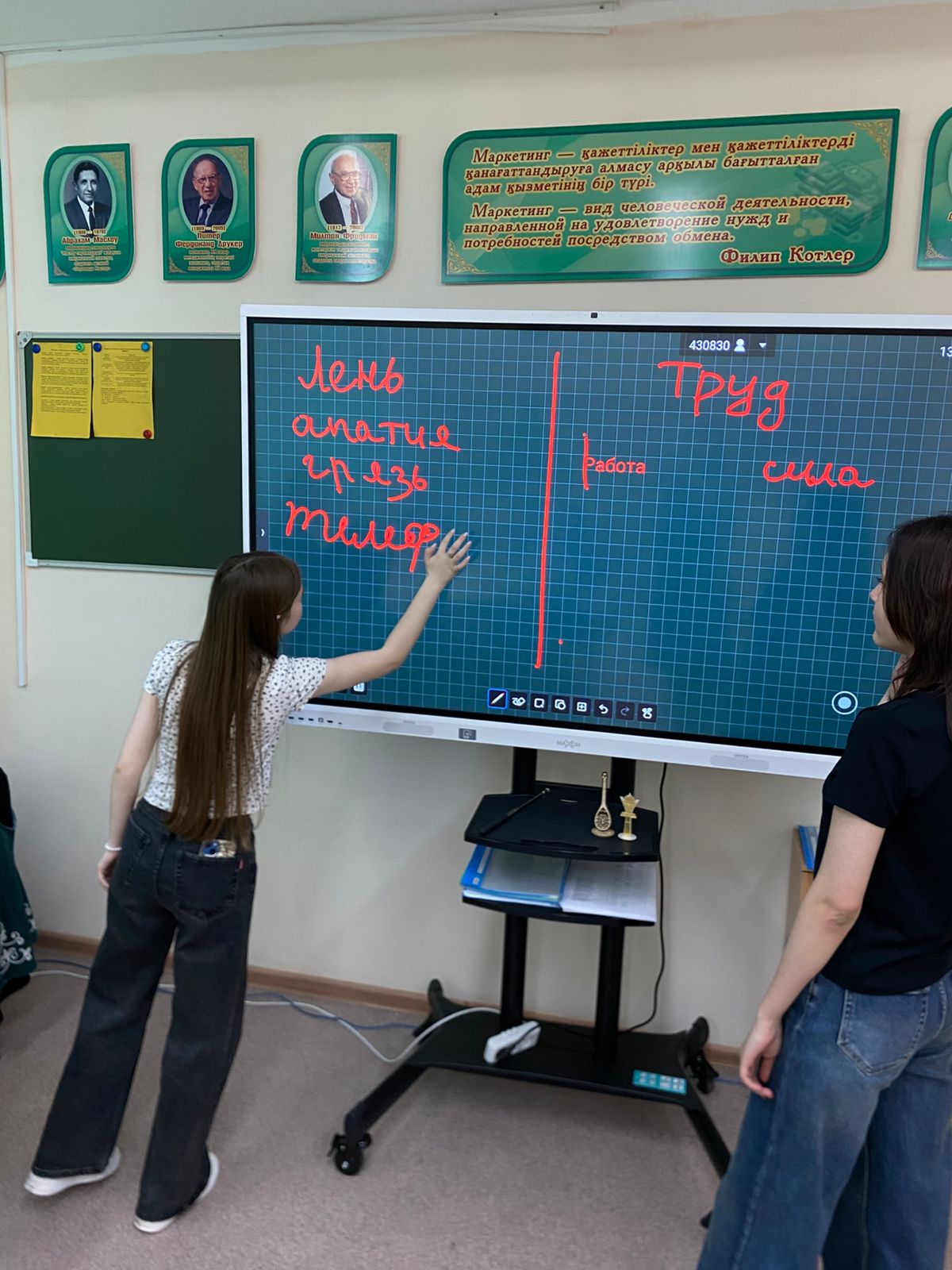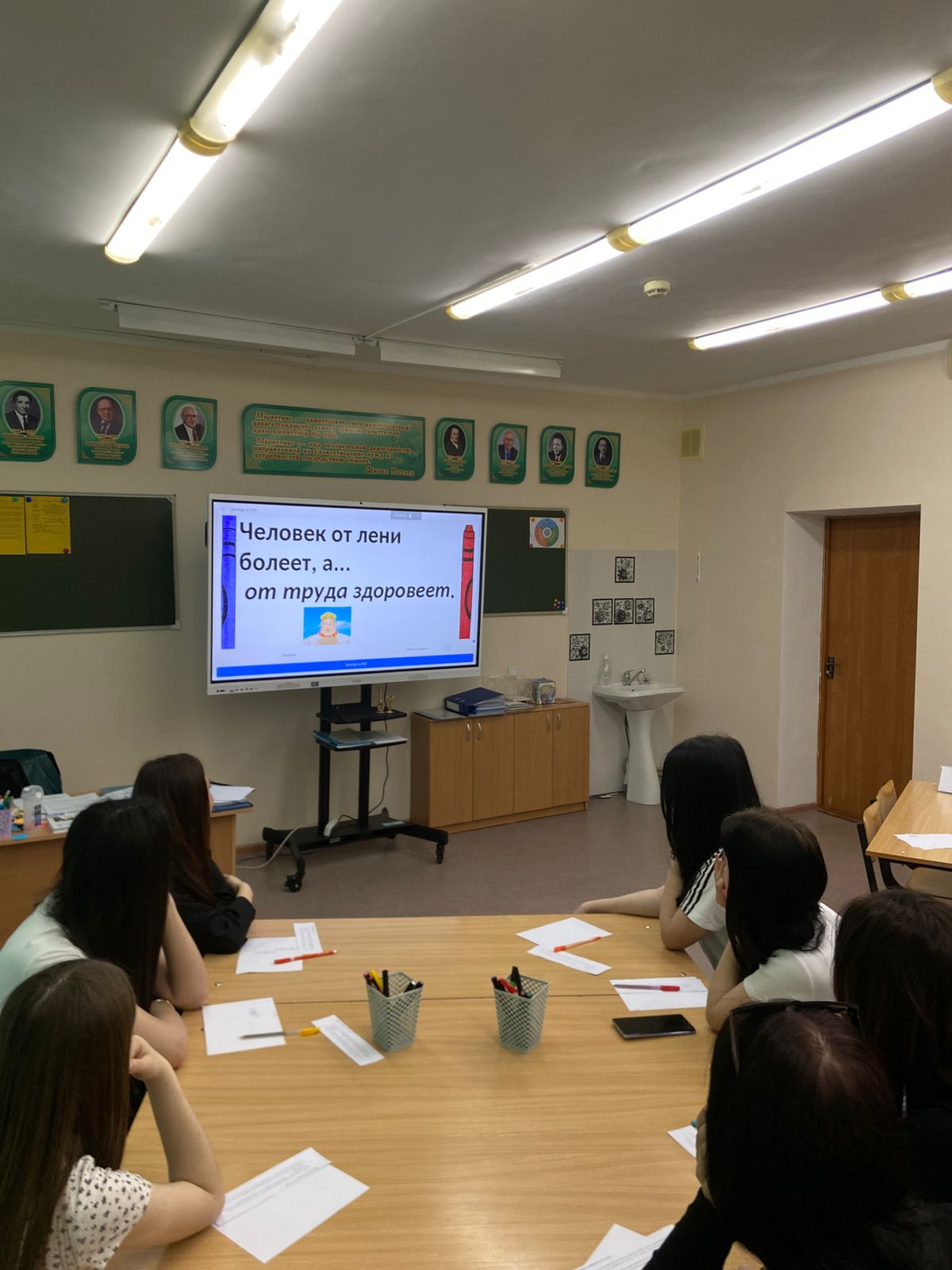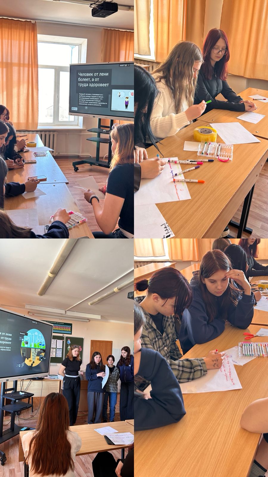 Талқылау барысында болашақ мамандар өз ойларымен бөлісіп, еңбек тек материалдық игілік емес, сонымен қатар тұлғаның қалыптасуы мен денсаулықтың көзі екенін түсінді.