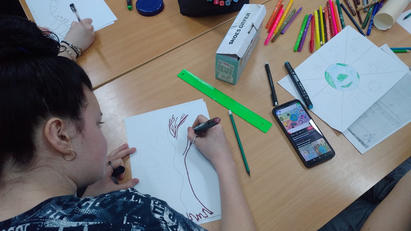 Бүкіл әлемде шамдар өшірілген сәтте, біздің жастар өз қиялдарына ерік берді. Үлкен ватмандарда ортақ үйімізді қалай сақтау керектігі туралы тың идеялар бейнеленді. Салынған суреттер мен коллаждар табиғатты аялаудың және саналы тұтынудың шынайы үндеуіне айналды.