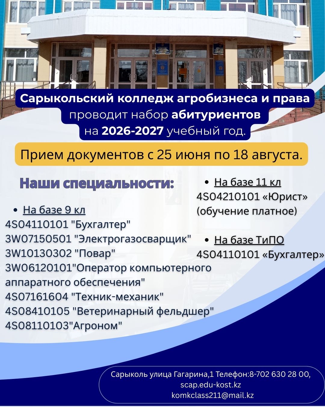 Сарыкольский колледж агробизнеса и права